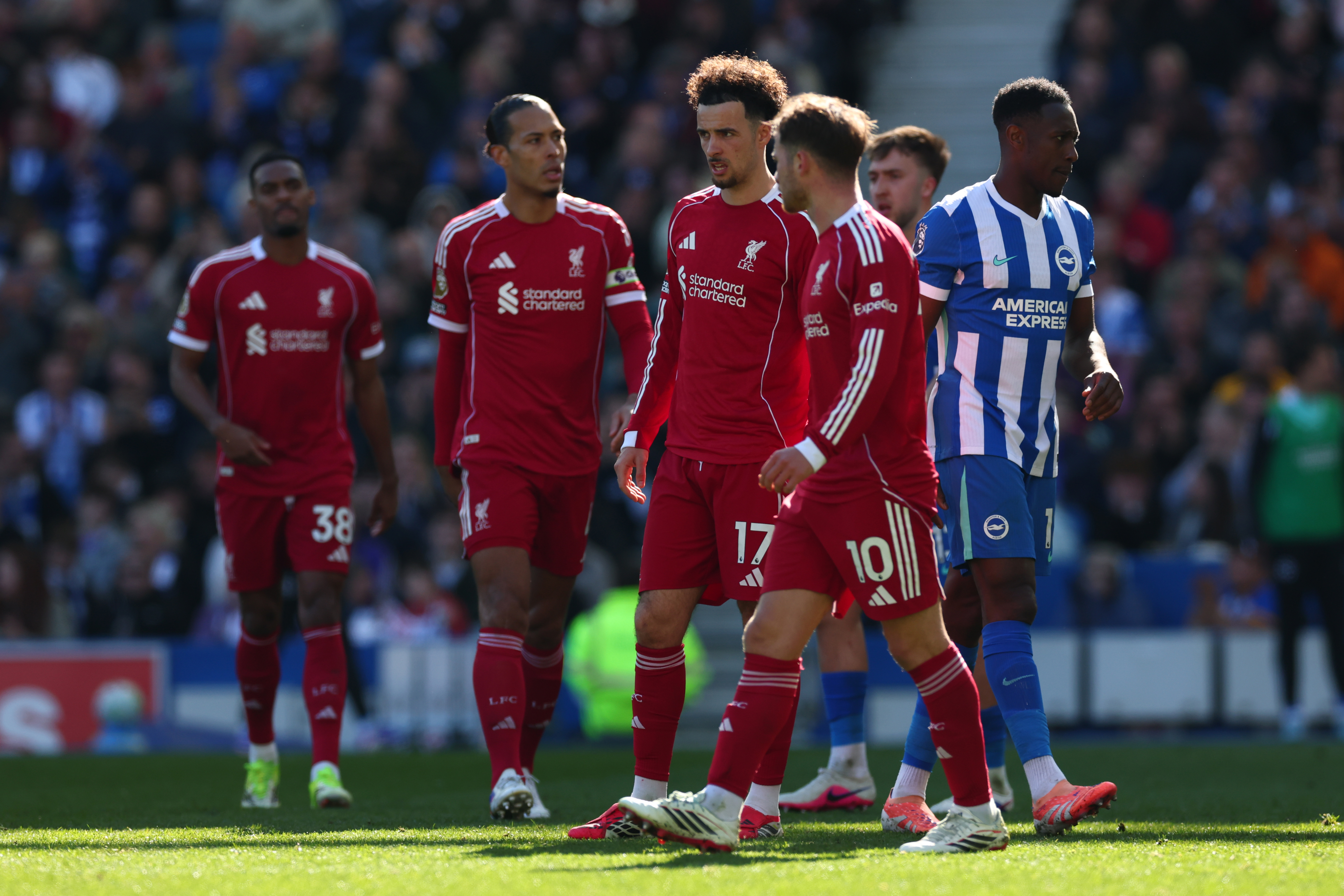 But Arne Slot’s men were slow out of the blocks at the Amex Stadium and were punished for their sluggish start as Welbeck outjumped Konate to head Brighton in front after only 14 minutes.